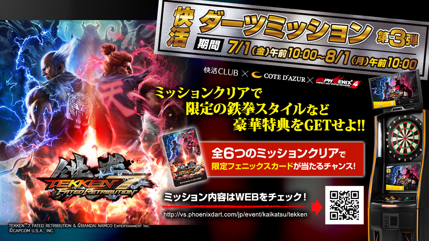 『快活ダーツミッション第3弾 鉄拳7 FATED RETRIBUTION』を開催いたします。